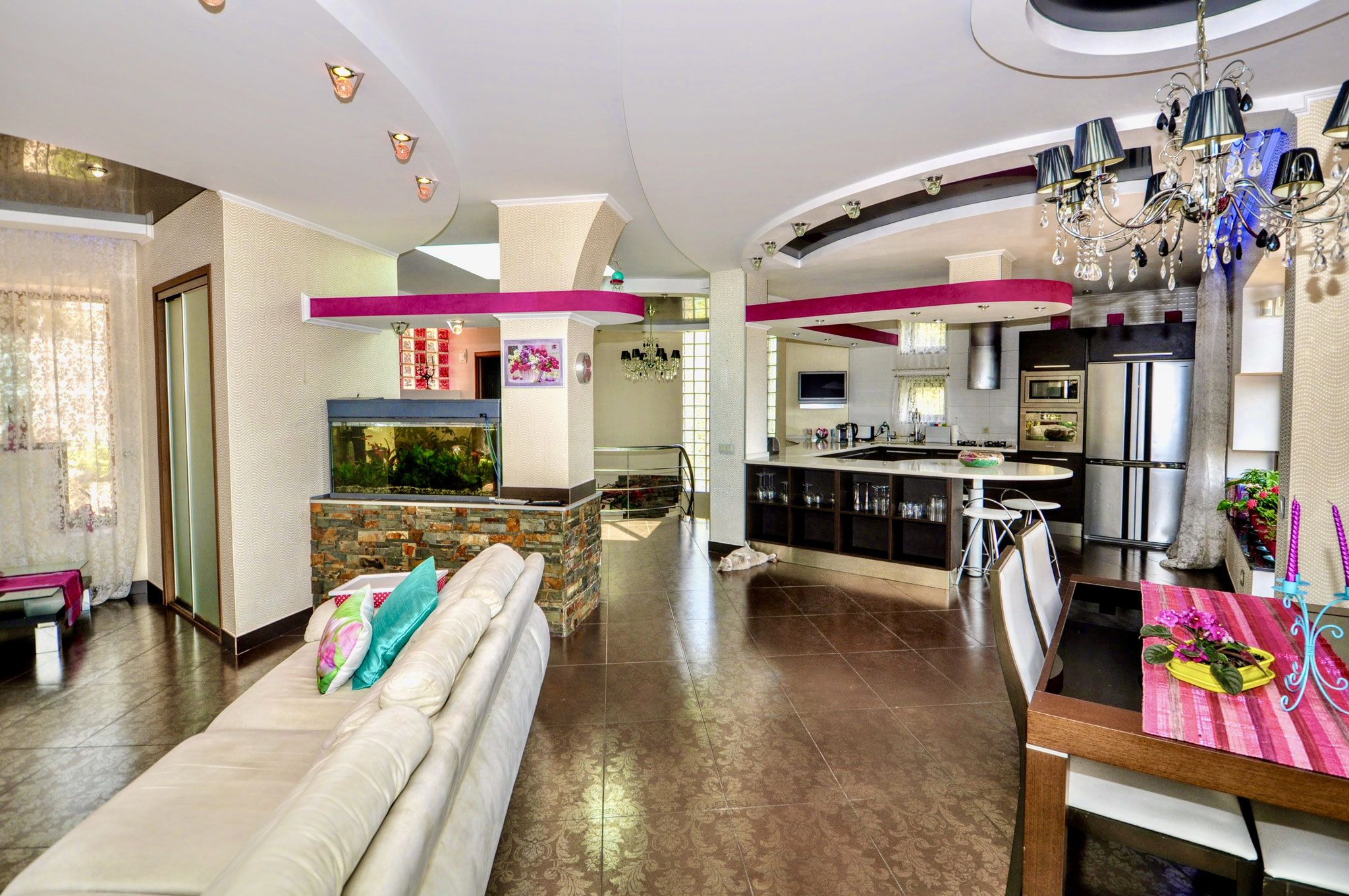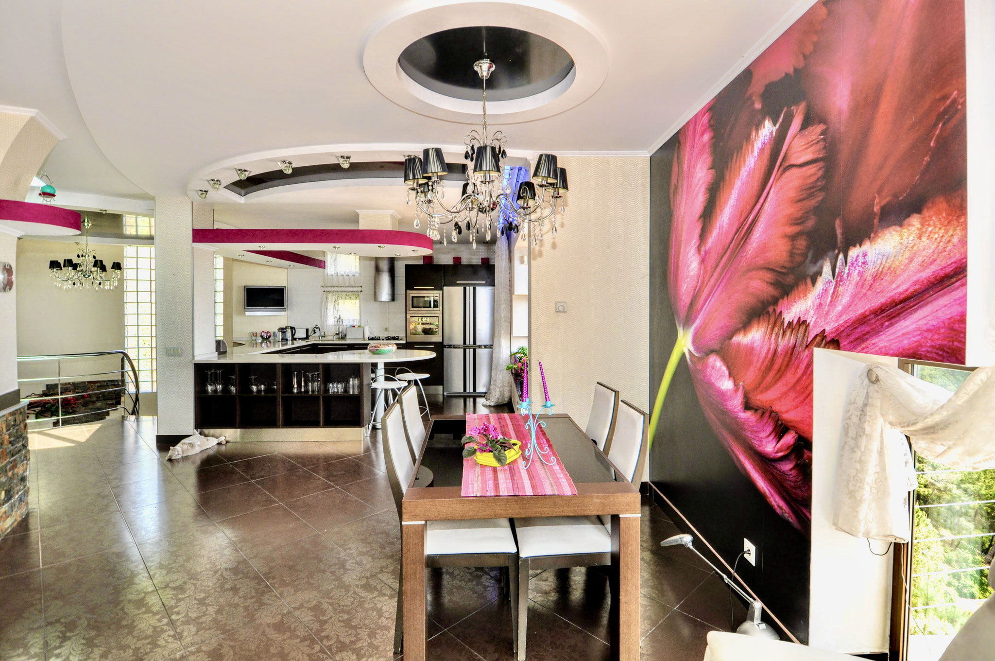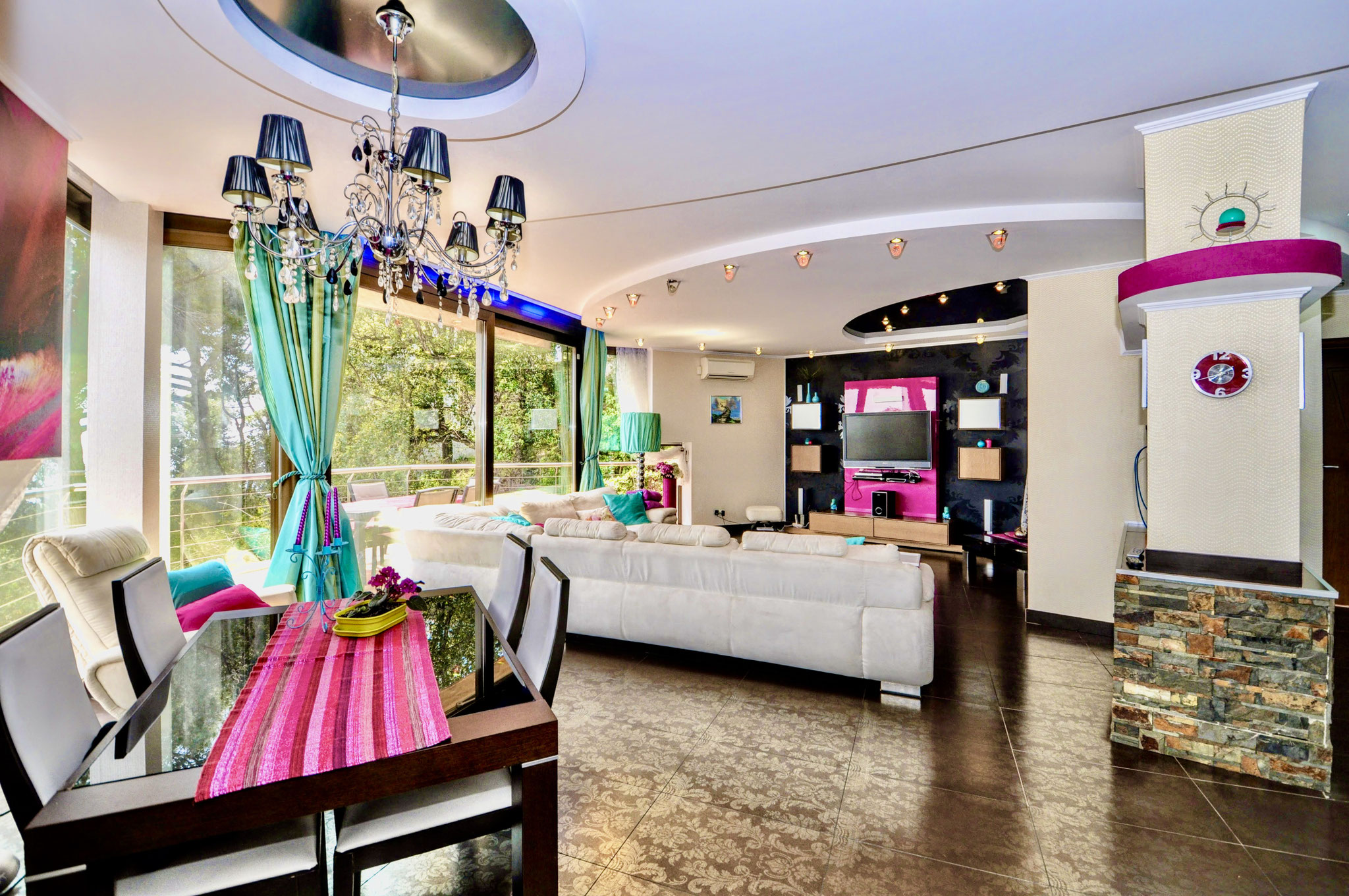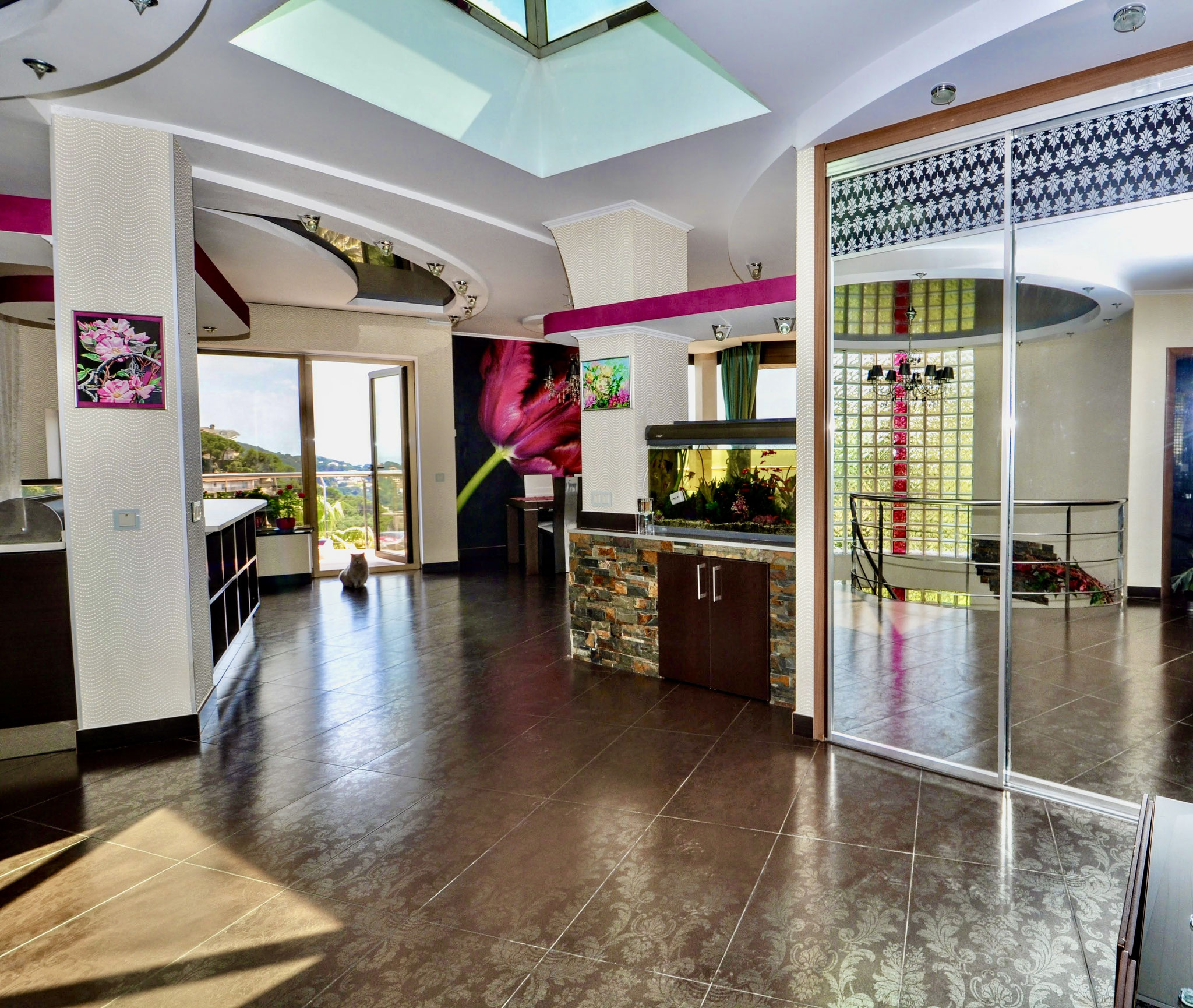 On the main floor is the kitchen open to the large living room and dining room with two balconies with incredible sea views and views of the garden and pool.